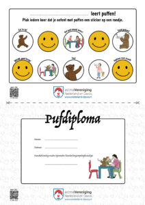 Het pufdiploma is er in twee verschillende versies: één voor kinderen van 0-6 jaar en één voor kinderen van 6-12 jaar. De oefenkaart en het pufdiploma staan op één a4 en zijn via de voorgaande links te downloaden om thuis uit te printen. Er komt ook een versie in kleur die we laten drukken. Deze zal via kinderlongverpleegkundigen verspreid worden.